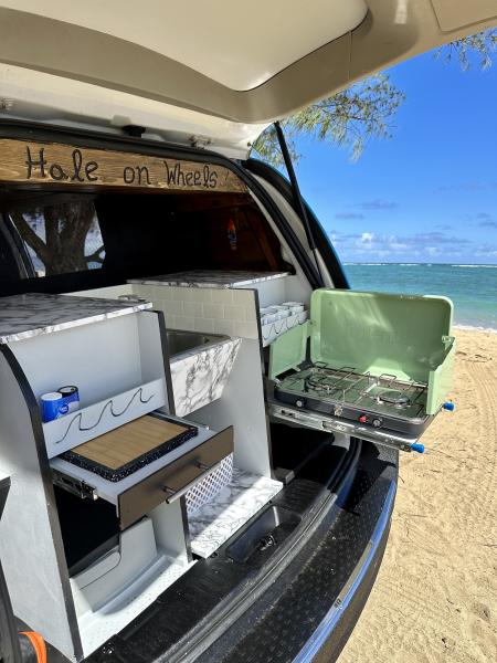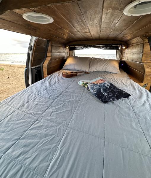 The campervan comes fully equipped with a pull out bed and easy access to the kitchen while you are on the road. We are constantly reminded how we have "thought of everything". Feel free to look over the FAQ's tab on our website for a full detailed list of everything included in your campervan, along with all of those other questions you may have about doing a "campervan stay" on Oahu. Any other questions? Don't hesitate to send us a message!